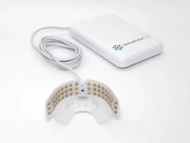 OrthoPulse® is an FDA-cleared, light-based device that helps accelerate the natural process of tooth movement when used with braces or clear aligners. It uses near-infrared light to gently stimulate the tissues around your teeth to help them move more efficiently.